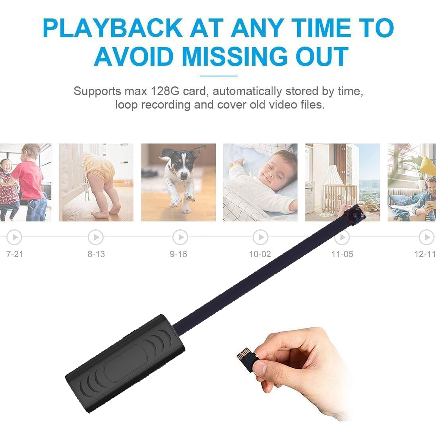 【Motion Detection Alarm and Record】This mini security camera will take a video to Micro SD card and take a photo to app once a motion is detected. At the same time, your phone will get a push notification to remind you.